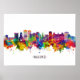 Elegante Aquarellskyline von Mainz, einer deutschen Stadt am Rhein. Die Altstadt ist bekannt für ihre Fachwerkhäuser und mittelalterlichen Marktplätze