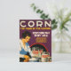 Vintage Plakat Werbung Mais als "wirtschaftlich, appetitanregend und nährend. " "Servieren Sie es zu jeder Mahlzeit". Es zeigt eine Frau mit Muffins, Pfannkuchen, Ritten und Maismehl vor ihr.