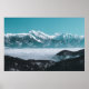 Landschaftsbild einer atemberaubenden Winterlandschaft mit majestätischen Bergen, die über Wolken erheben.