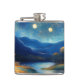 In dieser ruhigen Umgebung, inmitten der Natur gelegen, steht eine malerische Hütte. Der rustikale Charme wird durch das warme Licht aus der Veranda noch verstärkt und schafft ein einladendes Ambiente. Die Hütte liegt strategisch am Ufer eines Mäander-Baches und bietet einen friedlichen Soundtrack von sanftem fließendem Wasser. In der Ferne stehen majestätische Berge hoch und bilden einen dramatischen Hintergrund gegen den Nachthimmel. Das Licht des Mondes kaskadiert über ihre zerklüfteten Gipfel, wirft lange Schatten und fügt ein geheimnisvolles Element hinzu. Der Horizont ist mit einem faszinierenden Anblick geschmückt, während sich der Mond und die Berge ausrichten und so einen atemberaubenden Ausblick bieten, der sich so weit wie das Auge reicht. Eingetaucht in dieses Himmelsleuchten scheint die Hütte lebendig zu werden. Sein verwittertes Holz nimmt eine bezaubernde Qualität an und trägt scheinbar die Geschichten vergangener Generationen. Das weiche Licht, das durch die Fenster strömt, lädt zum Entdecken ein und macht Reisende müde, in den Wänden Ruhe zu finden. Dieses ruhige Ambiente erinnert an ein Gefühl der Ruhe und Harmonie. Die Kombination aus Hütte, Mäanderbach und Mondgebirge schafft eine magische Atmosphäre, die sowohl faszinierend als auch beruhigend ist. Es ist ein Ort, an dem man dem Trubel des Alltags entkommen kann, sich in die Schönheit der Natur eintauchen und in ihrer Umarmung Trost finden kann.