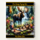 In einem lebendigen Wald steht ein majestätischer Elch an einem schimmernden Wasserfall. Umgeben von farbenprächtigem Grün, verschmilzt die Schönheit der Natur mit rustikalen Elementen auf einem Holztisch in der Nähe. HINWEIS zum Ändern von Text- oder Grenzfarben mithilfe des Entwurfstools Bearbeiten
