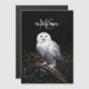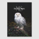 Tierporträtfotografie der majestätischen, schneebedeckten Eule, die auf einem Zweig mit einem personalisierbaren individuelle Name-Monogramm oben stehend ist.