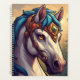 Edelpferd mit verziertem Goldhack mit blauen Juwelen, umgeben von pulsierenden Herbstblättern und einer Waldlandschaft, die Eleganz und Fantasie hervorruft.