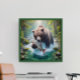 Ein atemberaubendes Gemälde mit einem majestätischen Bär, der in der Nähe eines fließenden Baches stehend ist und in dem ein Fisch gefangen wird, der anmutig im Wasser schwimmt.