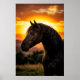 Majestic Black Horse Sunset Poster | Elegant Weste