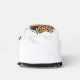 Ein reinrassiger Bulldog balanciert geschickt auf einem Surfbrett, während er eine gewaltige Welle reitet, und zeigt seine beeindruckenden Surffähigkeiten in der Nähe einer tropischen Insel.