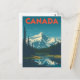 Celebrate the natural beauty of Canada with this scenic postcard featuring towering snow-capped mountains, lush evergreen forests, and a calm reflective lake. Perfect for nature lovers, travelers, and collectors who appreciate the serenity of the great outdoors.