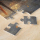 Eine ruhige Szene eines Hirsches, beleuchtet durch goldenes Sonnenlicht in einem schneebedeckten Winterwald, der Ruhe und Schönheit der Natur weckt.