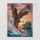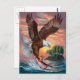 Ein mächtiger Adler mit ausgestreckten Flügeln schlüpft hinunter, um auf einem Fisch zu landen, seine Talone sind bereit, seine kämpfende Beute in einem dramatischen Moment der Naturjagd zu erfassen.