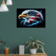Ein majestätischer Glatzenadler, der stolz die amerikanische Flagge auf seinem Kopf zeigt und Stärke, Freiheit und Patriotismus symbolisiert.