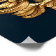 Ein Gemälde eines Adlers, der sich anmutig über einem schimmernden Gewässer erhebt und in reichhaltigen Ölen gefangen ist, mit faszinierenden Details wie Gold und Marmor, die Stärke, Patriotismus und Freiheit symbolisieren.