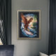 Ein Gemälde, das das kraftvolle Bild eines Adlers im Flug einfängt und anmutig über einem Fisch im Wasser unter sich hochsteigt.