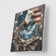 Majestic Eagle Under Mountains and American Flag Quadratische Wanduhr
