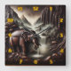 Majestic Elephant Drinks von Serene Waterfall Quadratische Wanduhr
