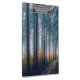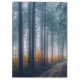 Majestätisches, emotionales Foto eines schmalen Weges, der sich durch einen scheußlichen Wald in der frühen Morgensonne zieht.