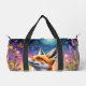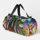 A majestic fox sits in a field of vibrant flowers, gazing up at the sky. Its beautiful red fur shines with white accents, and its pointy ears are alert. Butterflies flutter among the blossoms, surrounded by pink and purple hues. The fox rests gracefully in the long grass, encircled by the colorful flowers.