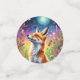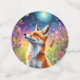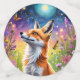 A majestic fox sits in a field of vibrant flowers, gazing up at the sky. Its beautiful red fur shines with white accents, and its pointy ears are alert. Butterflies flutter among the blossoms, surrounded by pink and purple hues. The fox rests gracefully in the long grass, encircled by the colorful flowers.