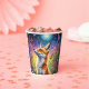 A majestic fox sits in a field of vibrant flowers, gazing up at the sky. Its beautiful red fur shines with white accents, and its pointy ears are alert. Butterflies flutter among the blossoms, surrounded by pink and purple hues. The fox rests gracefully in the long grass, encircled by the colorful flowers.