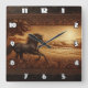 Majestic Galloping in Golden Sunrise Field Quadratische Wanduhr