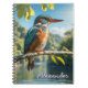 Ein stilvolles, spiralgebundenes Notizbuch mit einem Cover-Bild eines majestätischen Königs am Fluss. Die ruhige Szene zeigt den farbenfrohen Vogel, der auf einem Ast sitzt, mit Sonnenlicht auf den Blätter, und eine Touch der natürlichen Welt zu Ihren Schreibwaren. Personalisieren Sie das Notebook mit einem Namen in eleganter Schrift Typografie. Ein ideales Geschenk für Naturliebhaber und Naturliebhaber.