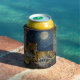 Leopard themed can cooler. On the front is an illustration of a majestic leopard with fur like molten gold, laying on a cliff ledge bathed in ethereal moonlight. Intricate carvings adorn crumbling stone pillars, and bioluminescent flora casts a soft, otherworldly glow. The scene is rendered in a rich, textural oil painting style with thick strokes.