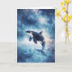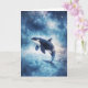 Ein prächtiger Ozean erhebt sich inmitten einer faszinierenden kosmischen Kulisse. Der Orca wird von den leuchtenden Sternen und Nebel des Nachthimmels beleuchtet und fügt sich nahtlos in die himmlische Atmosphäre ein. Die ruhigen blauen Farbtöne des Ozeans reflektieren die atemberaubende Weite oben und schaffen eine traumhafte und ruhige Szene. Dieses faszinierende Bild ruft ein Gefühl von Staunen und Ehrfurcht hervor, wo die Schönheit des Ozeans auf die Weite des Universums trifft.