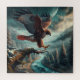 Majestic Red-Tail Hawk Soaring Over Winter Mountain Stream Capture the ungezähmten Geist der Wildnis mit diesem atemberaubenden AI-Bild mit einem prächtigen roten Schwanzfalken. Der Falken, der mitten im Flug liegt, breitet sich mächtige Flügel aus und geht in einen schneebedeckten Zweig über einen blühenden, türkisblauen Fluss, der sich durch ein ruhiges Wintergebirge zieht. Die dramatische Szene wird von hohen schneebedeckten Gipfeln unter einem riesigen, wolkengeplagten Himmel umrahmt, der von einem leuchtenden Mond beherrscht wird. Dieses atemberaubende Kunstwerk verkörpert Kraft, Freiheit und die unberührte Schönheit der Natur und macht es zu einem faszinierenden Design für eine große Produktpalette. Ideal für Naturliebhaber, Vogelliebhaber oder alle, die die beeindruckende Kunst der Wildnis schätzen: Bringen Sie die Pracht der Berge und die Gnade dieses majestätischen Raptors in Ihre Zuhause oder auf Ihre Alltagsgegenstände. Mit DALL-E3 generiertes AI-Bild
