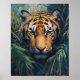 This artwork captures the powerful presence of a tiger hidden within dense jungle foliage. The vivid green eyes and detailed fur patterns highlight the animal’s strength and mystery, while the brushstroke style adds a sense of movement and life. It represents the balance between beauty and danger in nature, reminding us of the wild spirit that thrives beyond human reach.