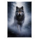 A striking poster featuring a majestic grey wolf emerging from dense fog, standing calmly with an intense, focused gaze. Cool tones, soft mist, and cinematic lighting create a powerful atmosphere of introspection, strength, and silent leadership. Ideal wall art for a living room, office, or premium gift.
