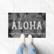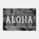 Graue Farbe. Die Botschaft von Aloha begrüßt Ihre Besucher in Ihrem eigenen tropischen Paradies. Die Palmen erinnern an die tropischen Strände von Hawaii. Diese Textilien verwenden die von Wind berührten großen Blätter aus Palmen in einer Farbkombination. Dieses Design kommt in verschiedenen Farben. Sie können die Nachricht anpassen.