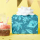 Türkisfarben und aquamarin. Ein Konversationsausdruck aus Tikis, Palmen, tropischen Fischen, Seeteufel, Hibiskus und Plumeria Blume erinnert an die Entwürfe, die in Vintagen Aloha-Shirts in den 40er und 50er Jahren verwendet wurden. Die Batik-Textur verleiht dem Design eine einzigartige Textur. Jedes Design wird in verschiedenen Farbkombinationen angeboten.