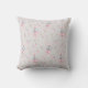 Ein süß-romantisches Kissen mit einem farbenfrohen Makaronenstapel in Rosa und Blau, verbunden mit einem eleganten rosa Bogen.