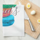 Französisch Makaroon Cookies Küche Handtuchdesign. Niedliche Geschenkidee für Freunde und Familie, die Makaronen und andere köstliche Süßigkeiten Liebe. Elegante Typografie-Vorlage für individuelle Name oder Zitat. Farbige pastellfarbene Aquarellkekse Tower Art Illustration. Geeignete Küchengeschenke mit personalisiertem Text. Rosa, grüne Orange und Blau.