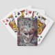This oil painting by Amanda Diehl features an intricate Venetian mask with elaborate gold and silver details adorning the playful, curly fins of the joker's hat and collar. The mask smiles gaily against a red velvet backdrop.