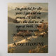 This powerful motivational poster features a breathtaking autumn landscape at golden hour—rolling hills bathed in warm amber sunlight, vibrant fall foliage in rich oranges, reds, and golds, with a soft misty haze adding depth and serenity. The dramatic black elegant script typography stands out boldly against the glowing scene, delivering a profound message of gratitude and carpe diem.