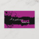 Fördern Sie Ihr Make-upkünstlergeschäft mit dieser mutigen modernen einzigartigen Karte Blumen- des rosa und schwarzen Grunge und Rebefarben-Spritzer-Make-upkünstler-Geschäfts. Diese mutige Schmutz-Visitenkarte ist auch ein großes Match für Nageltechniker, Friseursalons, Mode, Schmuckspeicher, Handtaschendesigner, Tätowierungskünstler, Bohrer und mehr. Entwürfe PAM ©2011.