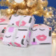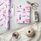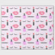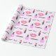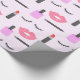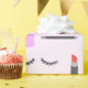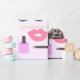 Ein niedlicher Make-upentwurf, roten Lippenstift, Lippen, einen lila Eyelinerbleistift, falsche Eyelashes und RosaNagellack kennzeichnend.