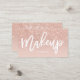Eine elegante moderne, stilvolle Make-upkünstler-Geschenkzertifikat-Geschäftskarte mit eleganter Skripthandbeschriftungs-Arttypographie im Weiß auf einem Imitat-Rosen-GoldGlitter und ein Pastell erröten rosa trendy und eleganter Hintergrund. Wenn Sie irgendeine Kundenbezogenheit benötigen, zögern Sie nicht, wenn Sie mit mir in Verbindung treten