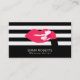 Makeup Artist Moderne Schwarz & Weiß Streifen Red Lips Business Cards.