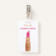 Makeup Artist Gold Sequin Aquarell Beauty Salon Lipstick Abzeichen. Imitate Gold Sequin Glitzer und rosa Aquarelllipstick. Fügen Sie Namen und Titel hinzu, personalisieren Sie den Schriftart. Fügen Sie Informationen auf der Rückseite des Abzeichens hinzu, falls gewünscht. Lieferungen von Geschäftsbüros für Schönheit. www.SamAnnDesigns.com