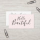 Einfache, trendige, moderne, minimalistische, berufliche, typografische Visitenkarten in schwarz, weiß und ein sehr helles Rosa mit dem Text: Hallo schön. Ideal für Schminkkünstler, Haarstylisten, Schönheitssalons, Stylisten etc. Wenn Sie eine zusätzliche Textzeile benötigen, können Sie auf "Anpassen" klicken (Sie finden sie nach dem Klick auf "Personalisieren") und mehr Text hinzufügen. Verschieben Sie den Text mit den Pfeilen auf Ihrer Tastatur (Strg-Klick für kleinere Bewegungen).
