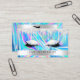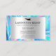 Platinsilber metallische Imitate Folie Glitzer und ein regenbogenfarbiger simulierter holografischer Druck flüssiger Textur Set der Ton für diese anpassbare Visitenkartenvorlage, mit Augenlidern mit einem weichen pastellfarbenen opal leuchtende irisierende Farbverlauf Textur Auschatten und simulierte Quarzgemeine.