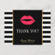 Makeup Artist Red Lips Moderne Schwarz-weiße Streifen Danke Postkarten.