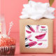 Makeup artist design mit glänzenden rosa lipsticks und rubinrosa weiblichen lips über weißem hintergrund. Dieser Stilaufkleber ist perfekt für Kosmetologen, Kosmetikerinnen und Kosmetikerinnen und ähnliche Berufe.