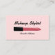 A pink business card features a lipstick illustration. Perfect for makeup stylist or artist, cosmetics business, nail art or beauty salon.