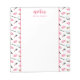 Desteis illustriertes Muster verschiedener Schminkprodukte als die Grenzen. Die Mitte hat eine weiße Farbe. Es gibt auch personalisierbare Textbereiche für den Titel des Notizblocks und für einen Namen.