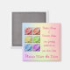 Sechs regenbogenfarbene Makro-Rose. Fügen Sie Ihren eigenen Text zu diesem anpassbaren speichern Sie den Datums-Magneten. Drücken Sie die Schaltfläche "Anpassen" oben, um das Objekt zu personalisieren, indem Sie einen anderen Stil wählen, die Farbe und Größe ändern oder Ihren eigenen Text und Bilder hinzufügen. Drücken Sie die Schaltfläche "Anpassen" oben, um das Element anzupassen und zu personalisieren, indem Sie einen anderen Stil wählen, die Farbe und Größe ändern oder Ihren eigenen Text und Bilder auf der Vorder- und Rückseite hinzufügen.