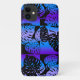 Schwarz mit lila und blauer Farbe. Die grafischen tropischen Monstera-Blätter verbinden sich mit einer farbenprächtigen Farbenmischung, die an die hawaiianische Landschaft erinnert. Es gibt andere Zuhause-Dekorationselemente im selben Design. Das Muster kommt in verschiedenen Farben und sieht gut aus auf weißen und schwarzen iPhones.