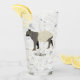 This drinking glass features my realistic style illustration of a Malayan or Asian Tapir in charcoal gray and cream. Below the graphic is a spot to add a name or other custom text in gray lettering. The illustration and name appear on both sides of this glass.