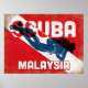 Malaysia Scuba Diver - Blue Retro Poster